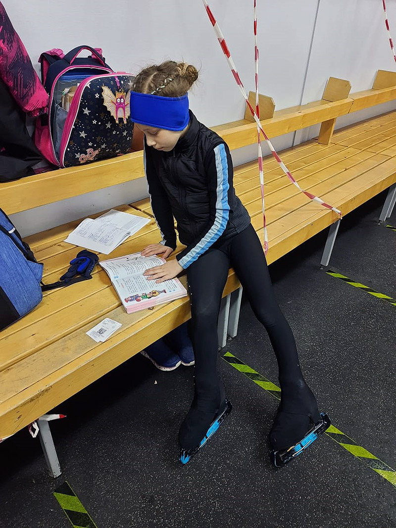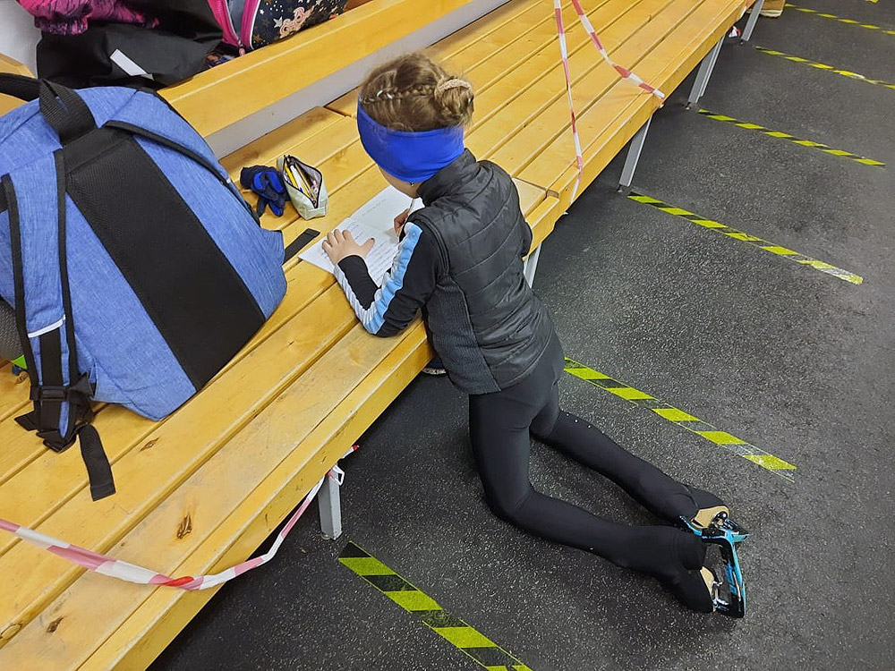 Это мы сегодня в Ледовом: вначале была сделана математика, затем пошёл русский прямо в коньках: