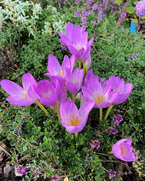 Оля, безвременник есть у вас ? неприхотливое растение, многолетнее, отлично смотрится в клумбах . Рано весной один из первых дает листву, пышно и бурно, пока другие только просыпаются. Потом листья отмирают, их незаметно среди соседей, уже распустившихся кустиков. А осенью, когда все уже прекратило цветение, они радуют красивыми фиолетовыми цветами, как тюльпанчики. У меня он высажен перед хостами, еще и гортензии растут..