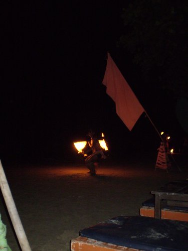 Далее вечером у нас было огненное шоу, сфотографировать получилось плохо, было очень и очень темно. Шоу очень классное, его ставит целая семья. Проходило оно прямо на берегу моря-океана. Вот одна фотка более-менее получилась.