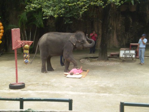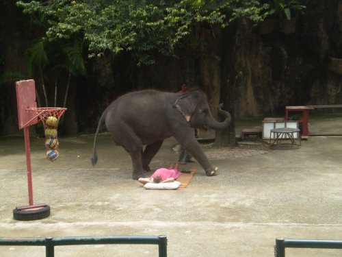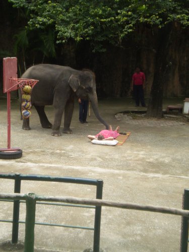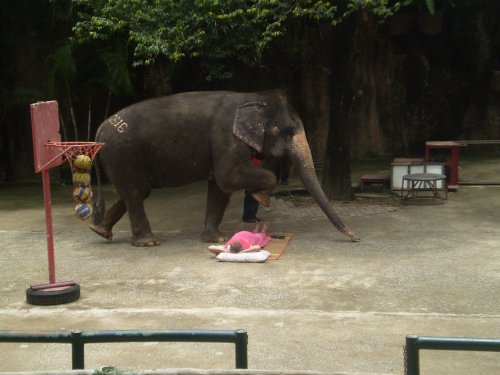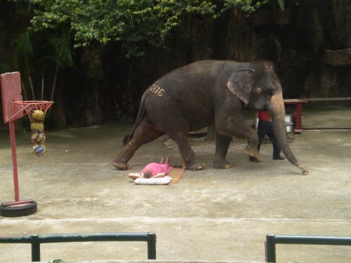 Их положили на коврик, накрыли пледами и....начался массаж. Причем слон массирует именно то место, о котором вы подумали. Мы потом прикалывались, что это был вакуумный массаж для продления мужской силы.