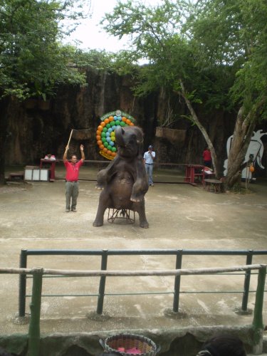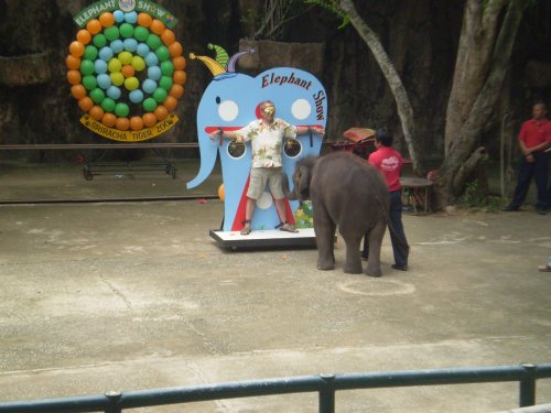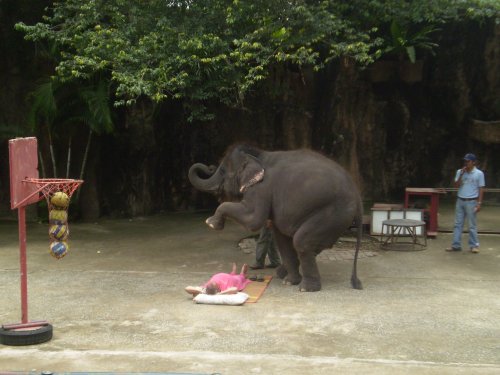 Потом ему представили вот этого милого слоника, которому в хобот дали стрелу от дартса и показали, что слоник кидать-то не умеет совсем.
