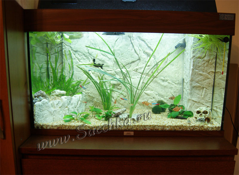 Ух ты какой! Я тоже собираюсь аквариум залить и заселить. С переезда стоит , вот только помыть удосужилась, завтра камни положу и водичку залью. Крышку еще надо для аквариума заказать, никак с мастером по крышкам не встречусь