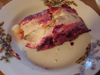 Верхний свекольный тоже намазать майонезом для красивого цвета.