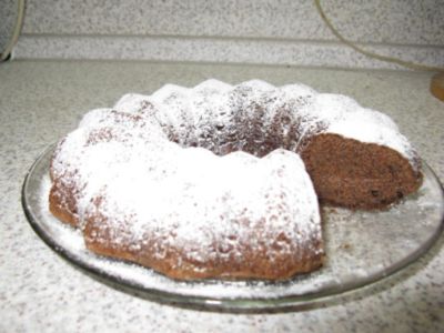 Только я сделала один большой кекс и заменила сухой горячий шоколад порошковым какао