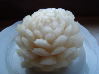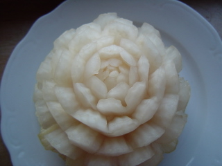 Спасибо за оценку моих работ! Свекла сырая,но после того как будет готов цветок,его можно сварить.Также можно варить готовые изделия из моркови.Изделия из картофеля можно запекать в духовке,или жарить во фритюре.Очень красивые цветочки! А свекла вареная или нет? Я из лука лилии делала, здорово получается, вообще занятие очень интересное. Спасибо за такой подробный мастер-класс.