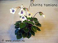 вот что я нашла в интернете (текст не мой, но я привожу его полностью):Среди растений семейства геснериевых есть род, довольно многочисленный, но редко встречающийся в культуре. Представители этого рода - травянистые однолетние растения с достаточно высоким стеблем, крупными пушистыми листьями и голубоватыми цветками. Они очень своеобразны, пышно цветут, ярко окрашены. Но есть одно растение, разительно отличающееся от собратьев. Низкорослое многолетнее пестролистное растение – Хирита китайская (Chirita sinensis) – обитатель средних поясов гор.Листья хириты собраны в прикорневой розетке. Они толстые, мясистые, довольно крупные – до 7 –10 см длиной и до 5 см шириной, с сильно выступающими снизу жилками. Верх листьев серебристый с различной величины зелеными пятнами и зеленым краем, низ бледно-зеленый. Весь лист покрыт белыми волосками. По сравнению с листьями цветки хириты невзрачны: они почти белые, с бледно-голубоватым оттенком, не слишком крупные, на довольно длинном пазушном цветоносе.Хириты содержат в умеренно теплых помещениях. Зимняя температура для них не превышает +18 градусов, оптимальная температура +14–15 градусов. Растения светолюбивы, но нуждаются в притенке от прямого солнца. Поливают хириты обильно, но дают почве достаточно хорошо просыхать до следующего полива. Растения не переносят полива холодной водой и опрыскивания листьев. Почва для хирит должна быть влаго- и воздухопроницаемой, состоящей из смеси листовой земли (2части), торфа (1 часть) и крупного речного песка (в смеси с сухим коровяком – 1 часть). Размножают хириты стеблевыми и листовыми черенками, реже делением и семенами.Растение достаточно миниатюрное, но при неоднократных перевалках в течение лета вырастают до средних размеров. Выглядят хорошо развитые экземпляры очень эффектно.У меня такого никогда не было и честно говоря, таких фиалок я даже и не видела. У нас в Самаре есть клуб "Самарская фиалочка", попробую в выходные что-либо у них узнать и сфоткать, или в "Самарской долине".
