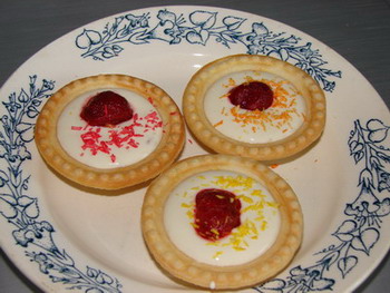 Оля добавь в след.раз желатина(размочить и подогреть вначале)-будет нормально.а у нас такой простой десертик: готовые тарталетки, начинка: пачка творога, 3 стл. сметаны, 3 ч.л. меда, клубника, кокосовая стружка. Начинка , правда, получилась жидковата