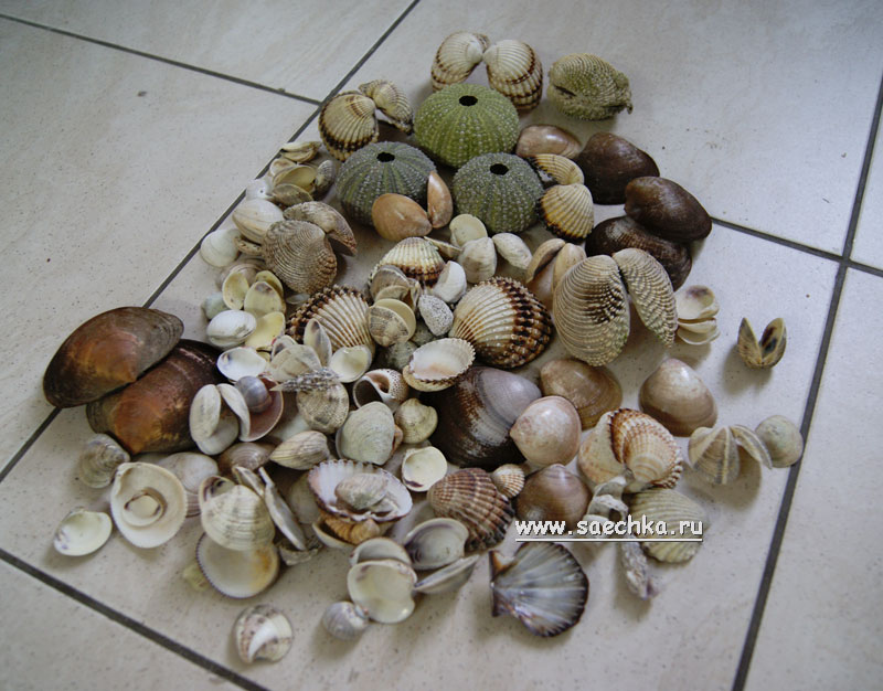 А в них я упаковала кучу ракушек. Саша наловил: