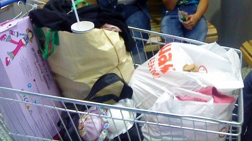 Да классный шопинг был, и тележки совсем не большие, и товара в них не так уж и много. Нина больше пугает.