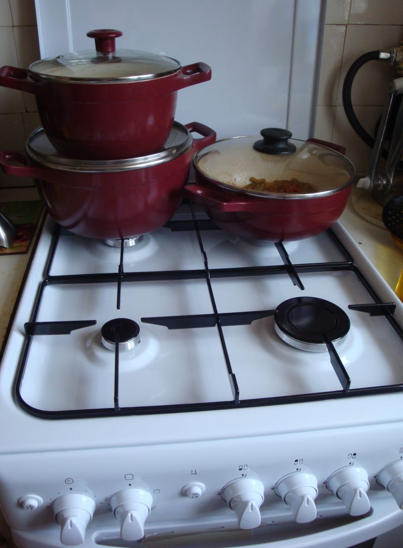 и еще набор кастрюль с керамическим покрытием (давно мечтала)