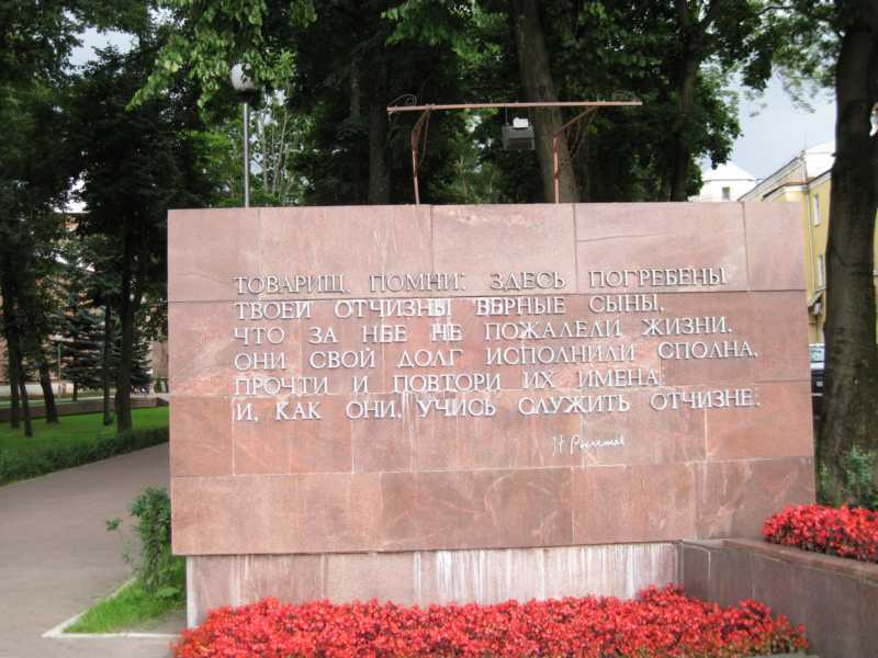 Здесь у крепостной стены захоронены люди, отдавшие свою жизнь за народ и Отечество. Подобных мемориалов на территории России всего два: первый это известное всем захоронение на Красной площади в Москве, второе – в городе-герое Смоленске.