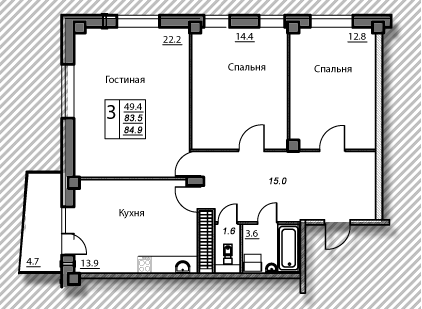 Мы решили из спальни посередине сделать гостиную, а в большой сами жить и шкаф туда в смежную стену с кухней. Площадь поменялась:19 и 17м получились комнаты.