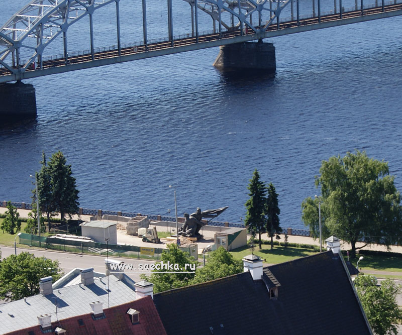 Рядом с железнодорожным мостом виднеется за забором какой-то памятник советской эпохи: