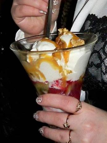 Еще понравился салат "Мечта гурмана". Фотки нет, к сожалению, просто расскажу. Итого, сельдерей (корень), твердый сыр, морковь вареная - порезаны тоненькими и длинненькими брусочками; шампиньйоны маринованые - тоненькими пластинками, консервированый ананас - кусочками; мясо (по-моему, телятина) обжарено тонкими длинными кусочками, очень мягкое и нежное. Каждый ингредиент отдельно выложен на большую круглую тарелку, все кучки разделены тонкими дольками яблока. Где-то там кажись еще был майонез. Сообщение отредактировал Lyubo4ka: 29 декабря 2011 - 13:52