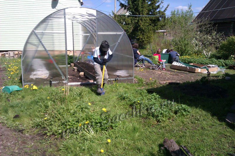 Толя быстро удрал, пришлось перепахивать одной мне... Я перекапывала, потом свекор измельчал большие куски земли и помог сделать бортики. Я ж говорю - у меня золотые свекры