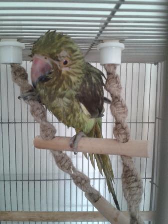 Доброго дня, спасибо за отзыв о нашем коллективе и добро пожаловать. Если бы в Москве летали ожерелы, как у Вас, на улице....мне бы было чем заняться!здравствуйте всем.я очень неожиданно стала обладательницей ожерелового попугая(муж нашел его на улице сидящем на земле,поймал и принёс домой)вот теперь сидит в клетке уже вторую неделю.прочитала весь ваш форум,нашла много полезного,но вопросов всеравно куча. он не щугается нас,по клетке не мечется и спокойно ест в нашем присутствии но как только к нему подходим весь взьерошивается и шипит.это что?защитная реакция?ещё клюв у него не красный на фото видно почему? пару дней назад начала открывать клетку,не выходит вообще.это нормально?ах да еще муж когда его нашел у него над глазом был нарост и глаз покрасневший.конечно я с ним к ветеренару побежала сказали что он его наколол чем-то и рана старая поэтому и нарост образовался.сказали что скорее всего он этим глазом не видит.выписали нам антибиотики,пьем теперь...,а нарост надрезали.бедненький мне его так жалко...пытаюсь баловать его всякими вкусняшками,но мне всё равно грусным кажется.прада муж когда с работы приходит садится рядом с ним и насвистывает так попугай(кстати я его Гога назвала)ему курлычет в ответ,а так молчит.Кстати нам через неделю опять к врачу на проверку после антибиотика.как бы так это его свозить с наименьшим стрессом для него? P.S форум у вас отличный