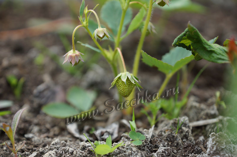 На даче нынче тоже куча цветочков и незрелых ягод: