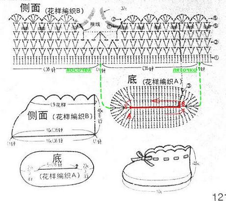 Так,рискну!Мне осталось еще связать кружавку на одеялко и попробую связать,получится,хорошо,нет,значит не судьба.На самом деле там все проще некуда. Воздушная петля и столбик с накидом. Начинается вязание со стопы, вяжется цепочка воздушных петель, а потом она по кругу обвязывается столбиками с накидом. Как получился овал нужного размера, переходишь на верхнюю часть и вяжешь по схеме. Сверху я добавила кружавчиков от себя и всё, готово, только ленточку вставить!
