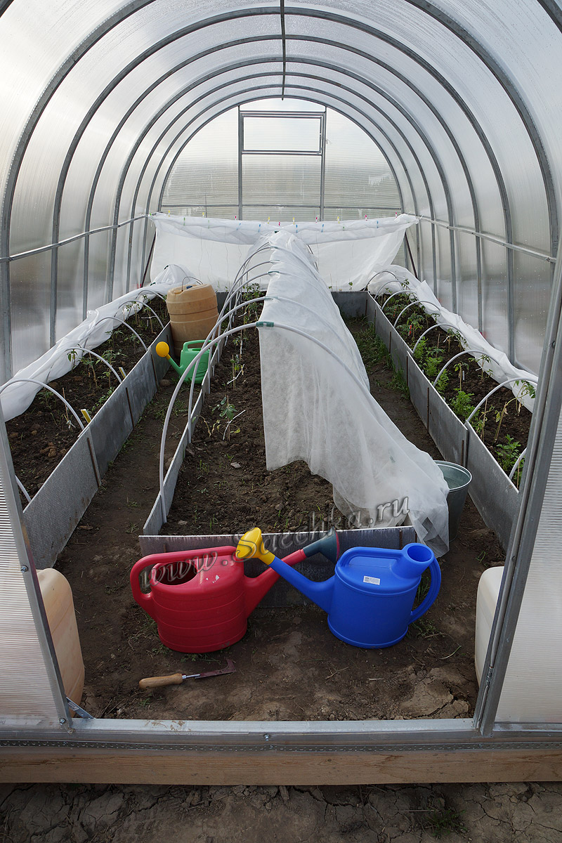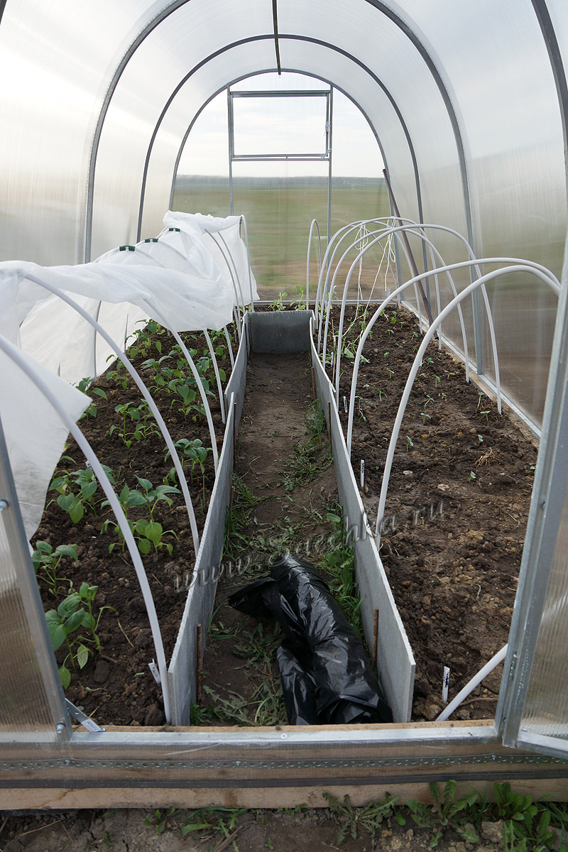 Парник с помидорами выглядит нынче так (я удивилась, что большинство помидоров выжило - всего 4 кустика выкинула):